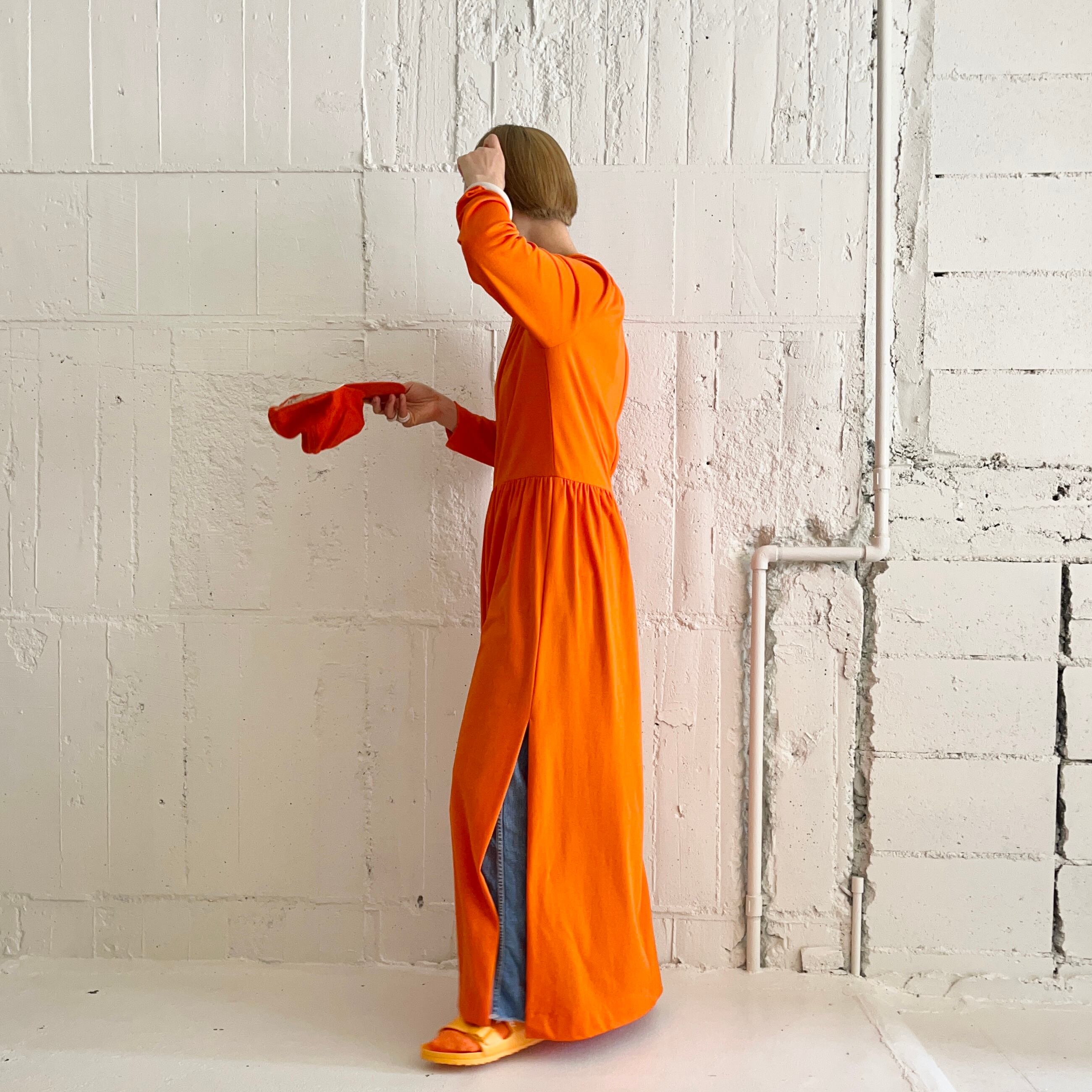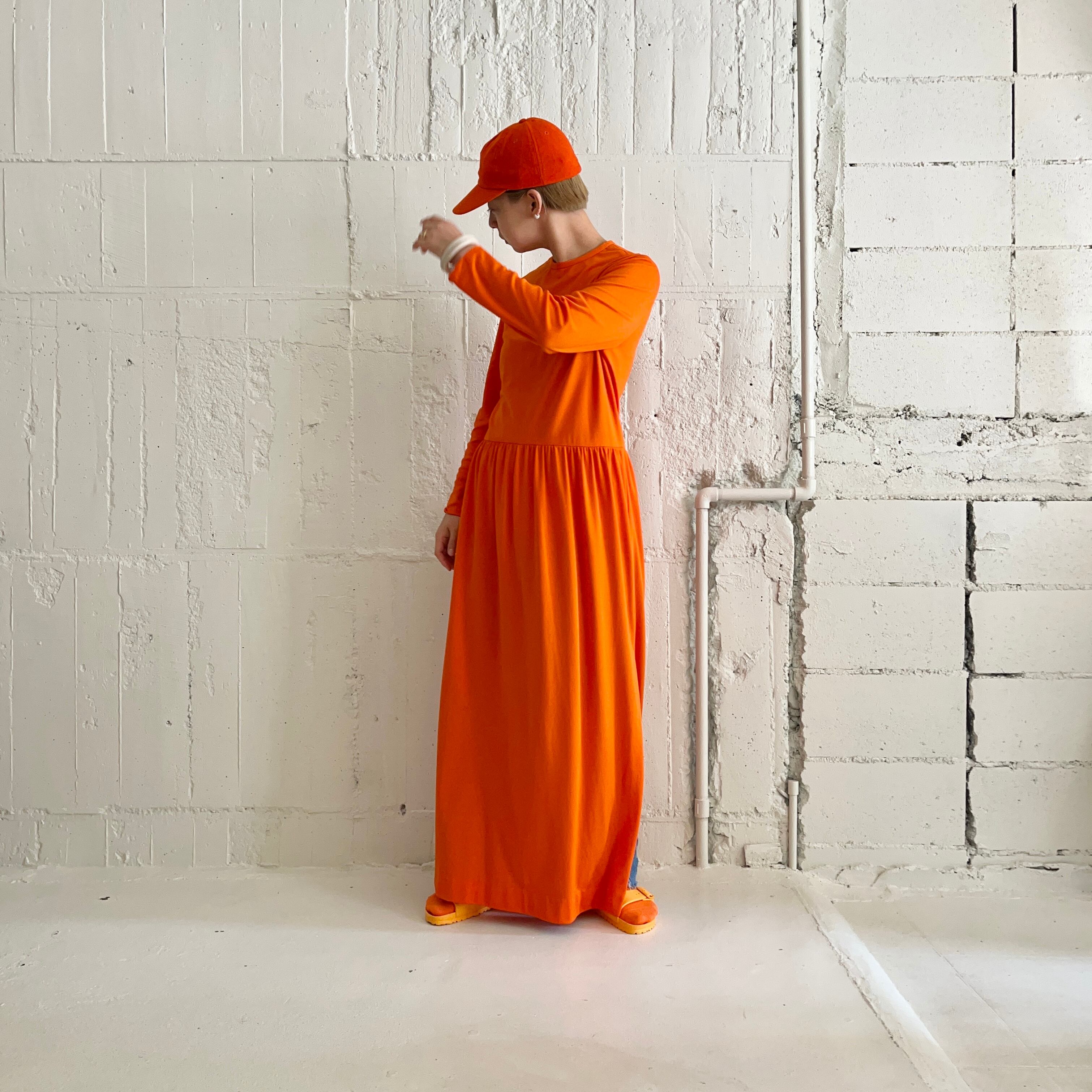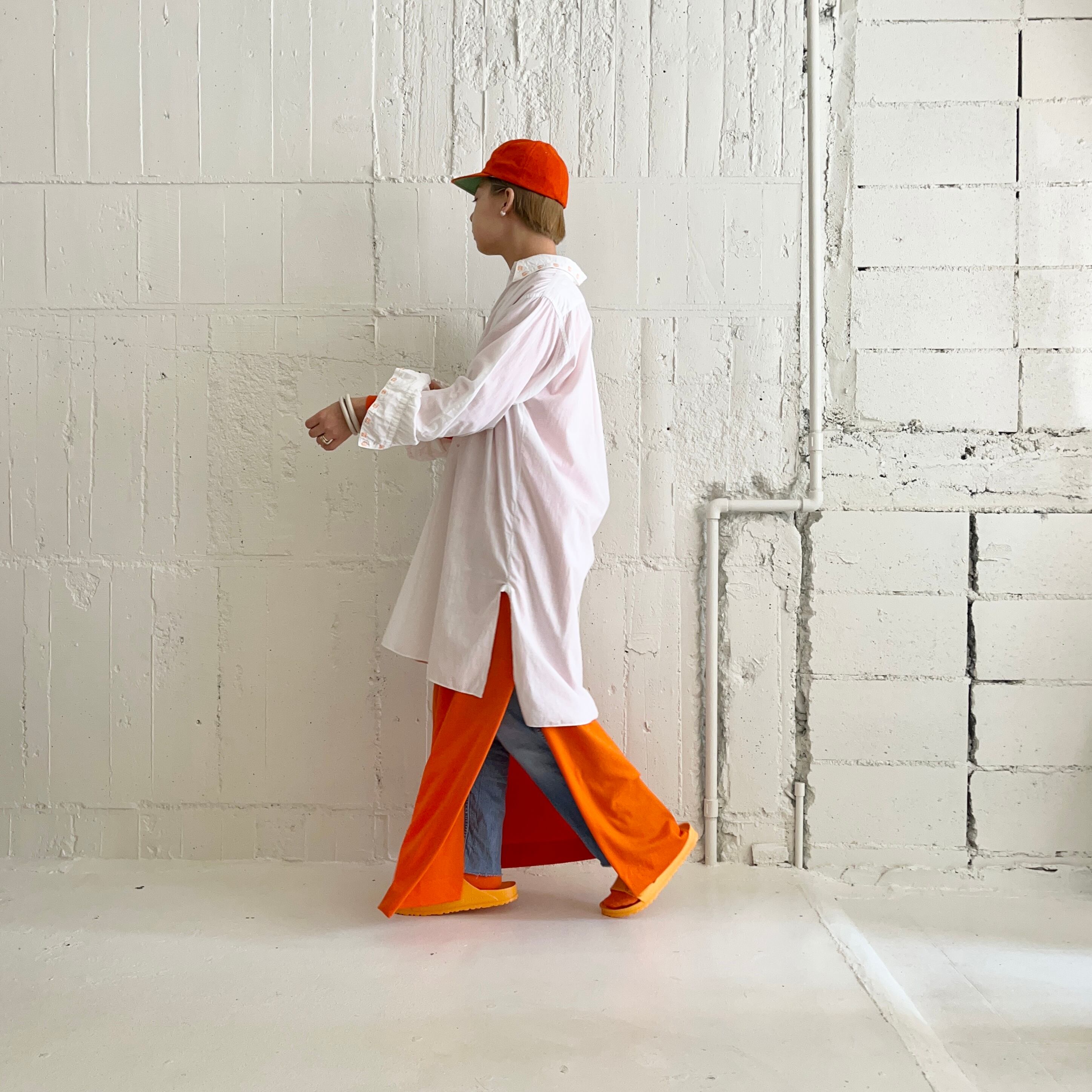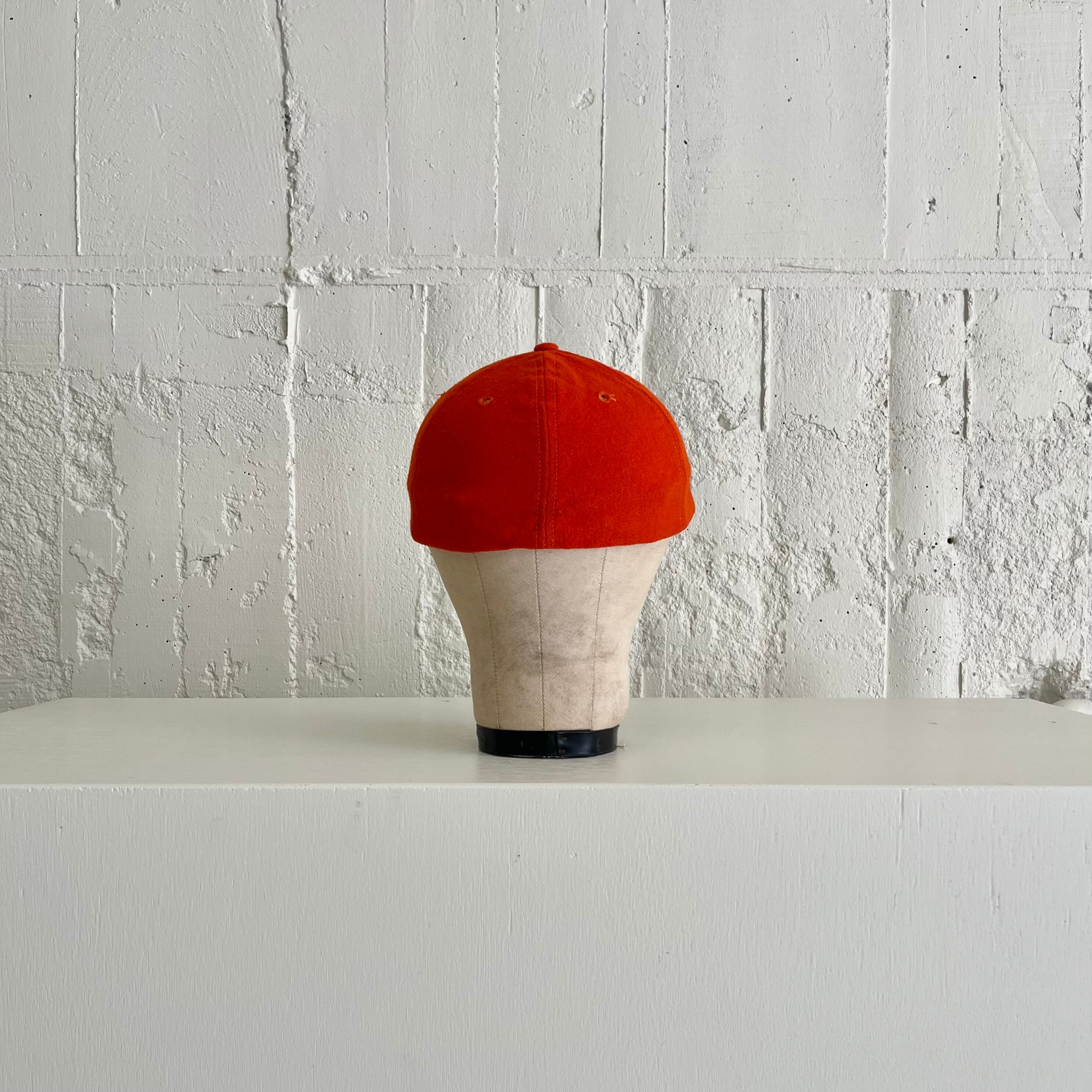60年代の懐かしさとプレイフルな空気を醸し出す橙色のベースボールキャップ