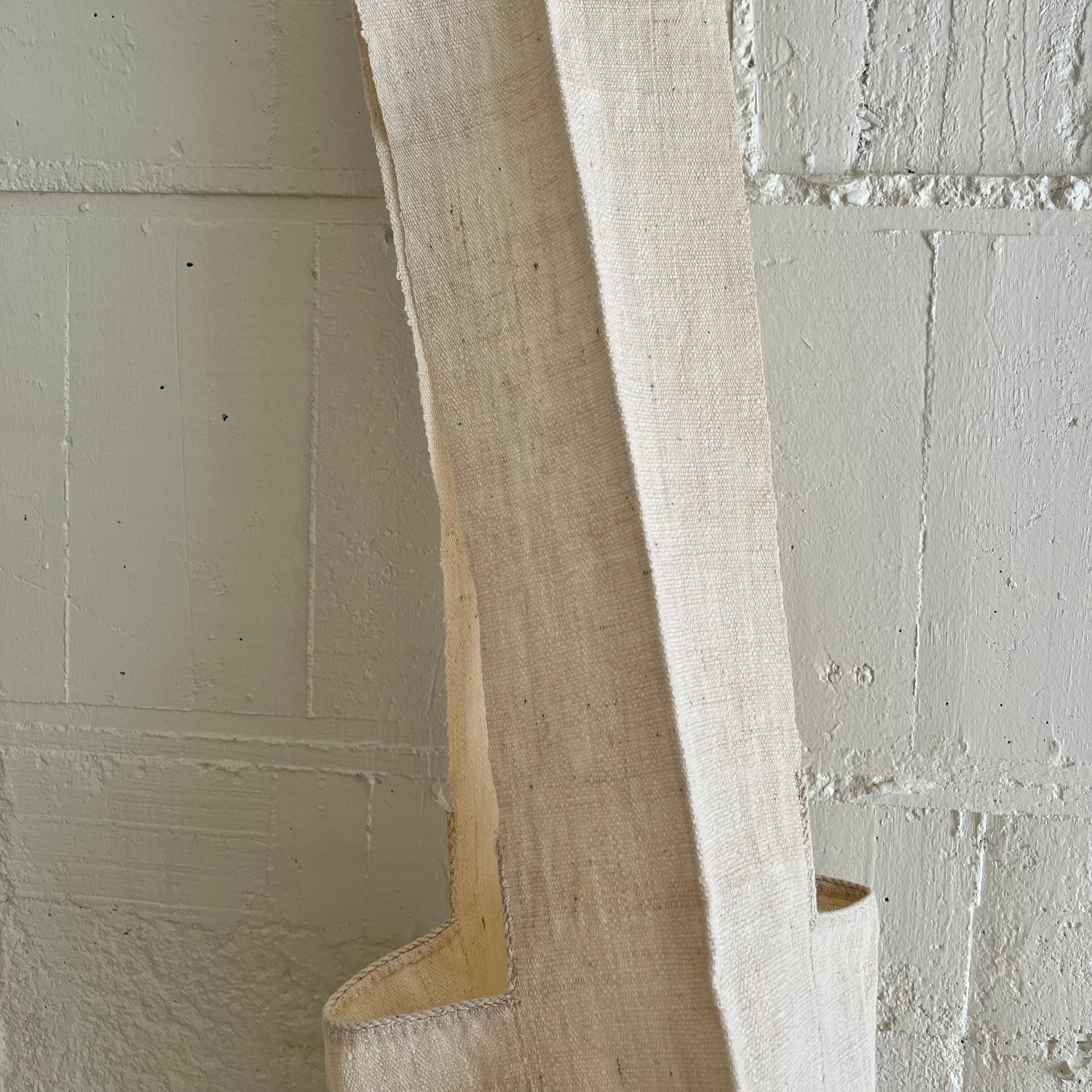 肩紐から本体の両脇までを一本の細長い布で仕立て、中央の布と潔く縫い合わせた構造は、装飾に頼らない素朴な美しさを宿す