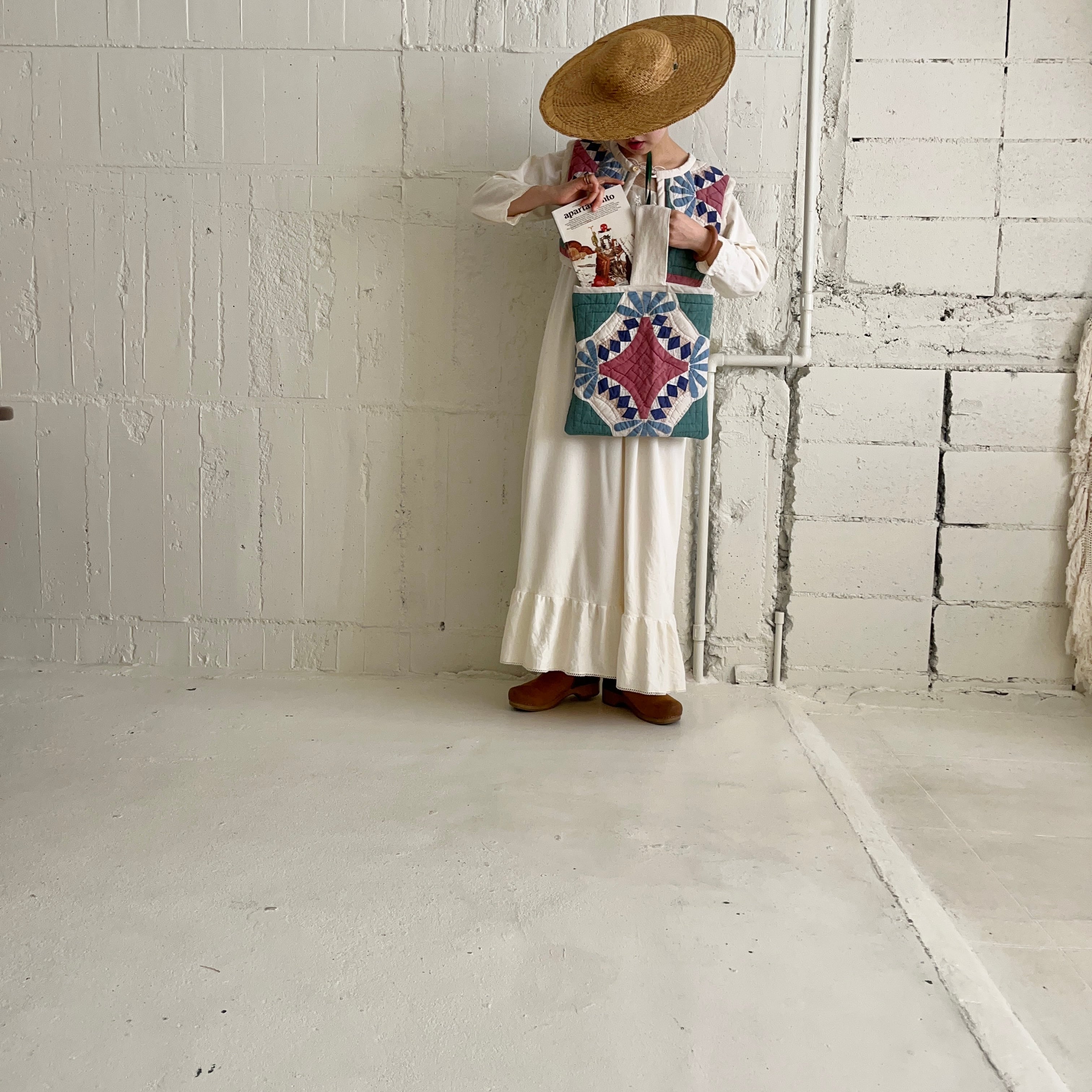 ボタンを後ろにすれば、キルトのパターンが主役となり、